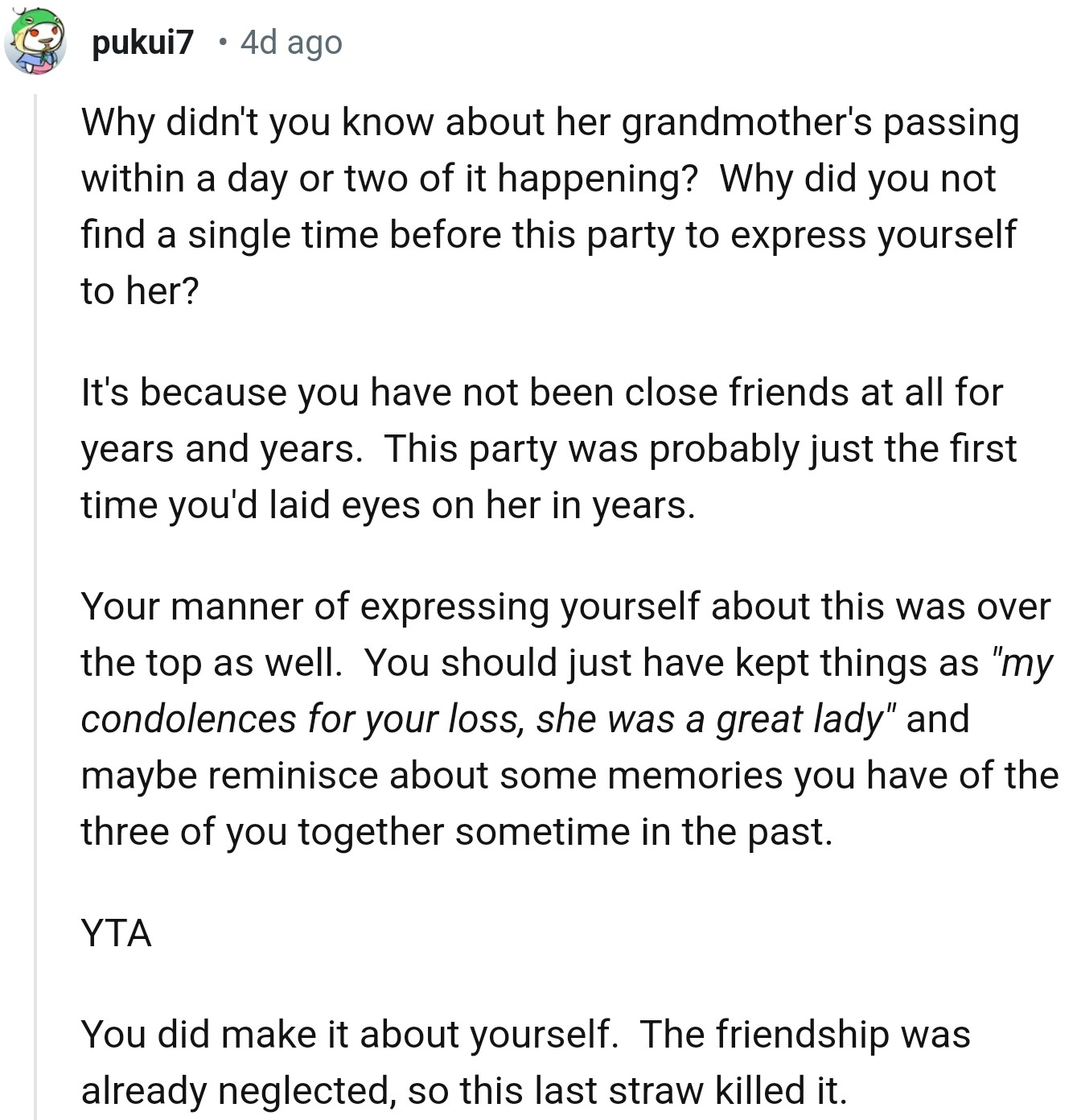 Woman Cuts Ties With Friend for Confronting Her About Not Being Invited to Her Grandmother’s Funeral