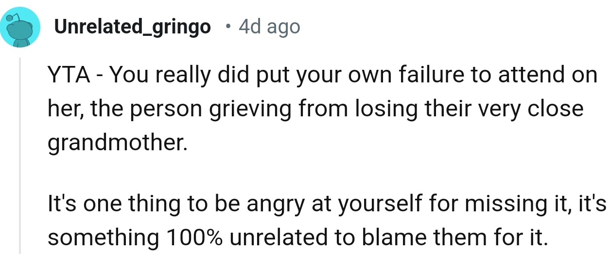 OP Told Maggie How Hurt She Felt at Her Engagement Party Because Maggie Hadn't Told Her About the Funeral. Maggie Was Very Upset About Her Grandmother's Death and Thought OP Was Making It All About Herself.