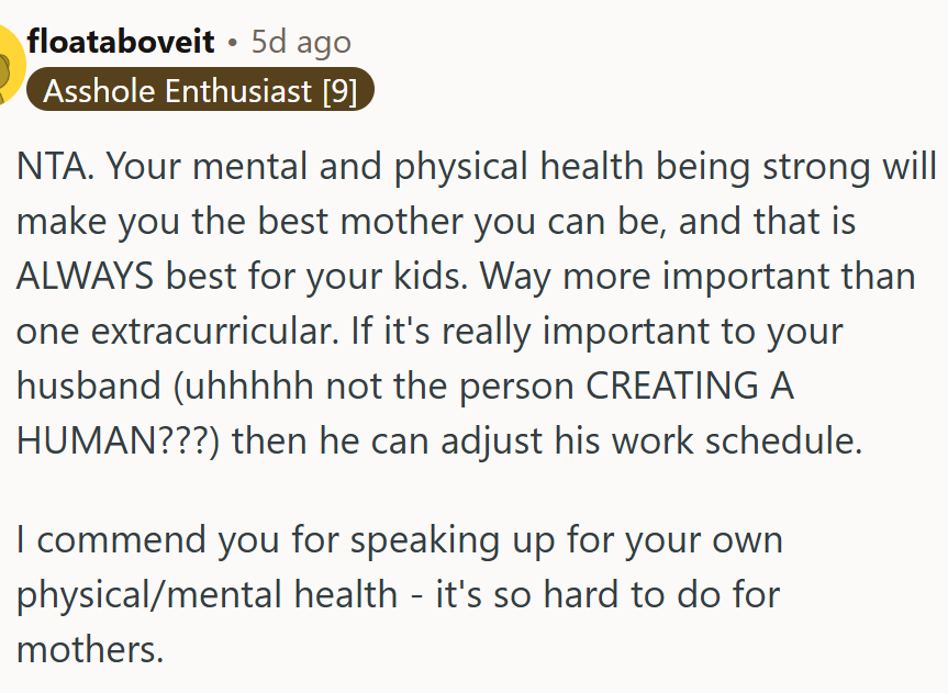 This situation highlights a common struggle many parents face: the tension between societal expectations and personal needs. The mother’s instinct to preserve her only day of rest underscores the psychological principle of self-care, which is essential for maintaining emotional availability and patience, especially when juggling multiple responsibilities. Prioritizing her well-being isn’t selfish; it’s a crucial step in being a more effective caregiver and partner.