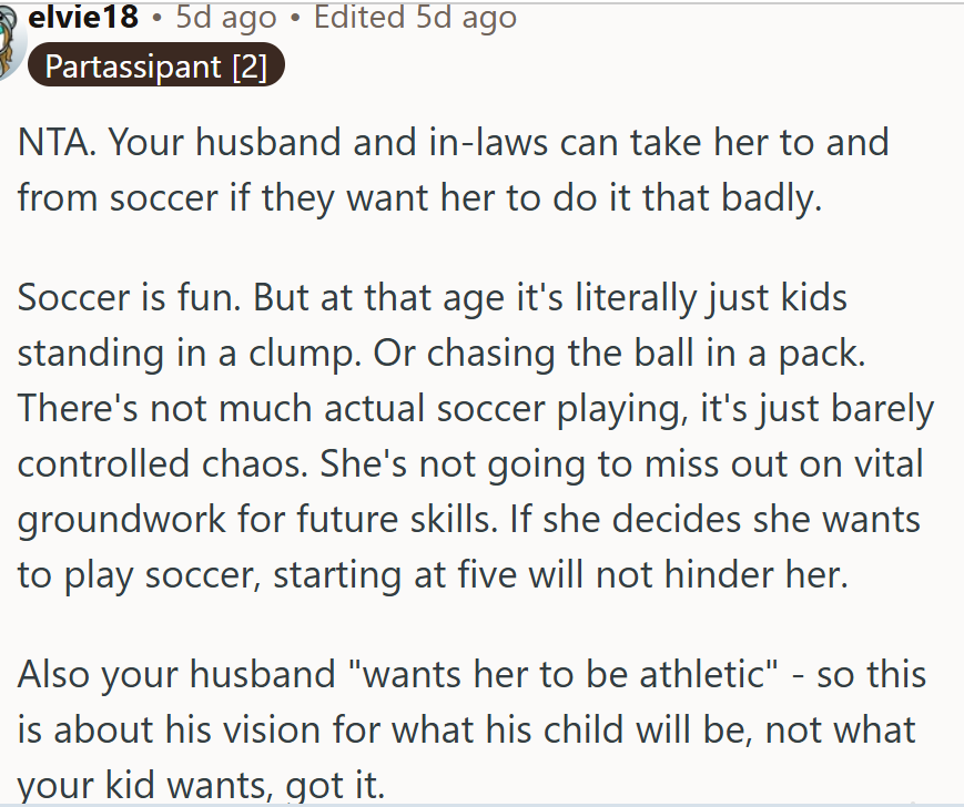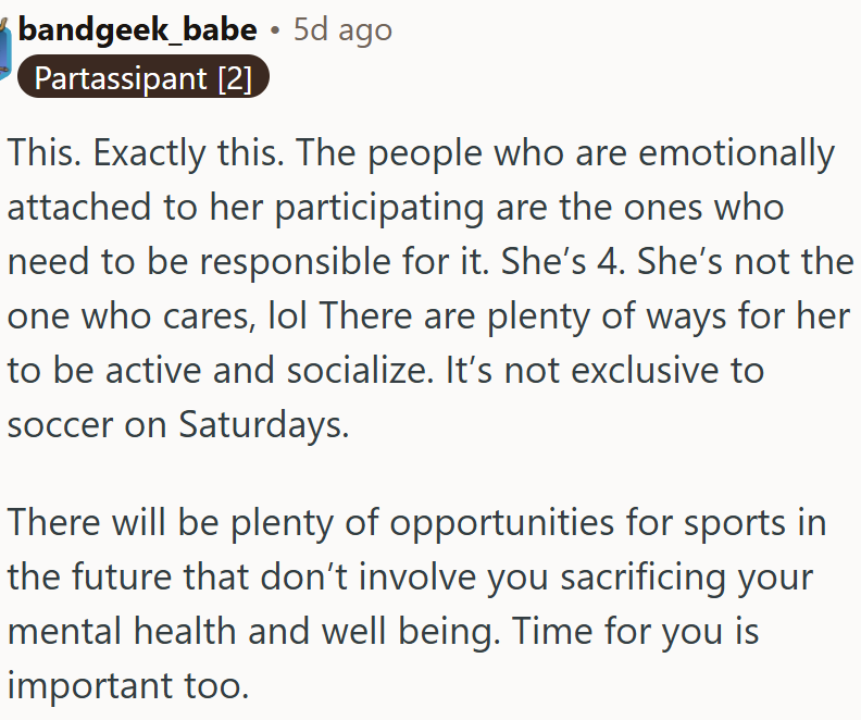 RedditOne exhausted mom resisted enrolling her four-year-old in Saturday soccer.
