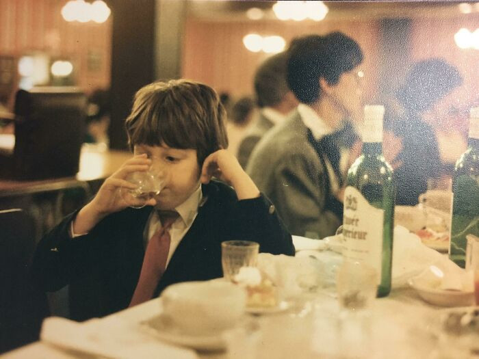 "Stealing A Drink Of Wine At A Wedding While My Mom (Behind Me) Isn’t Looking. (1987)"