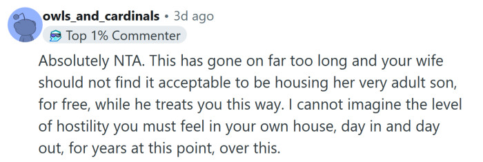 When your wife’s 30-year-old son treats your house like a hotel and you like the help, even the calmest man can only stay silent for so long.