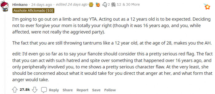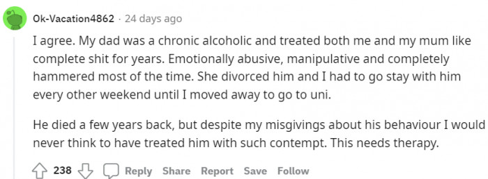 In this case, it seems the rift between the Redditor and his mom is far beyond reconciliation. But then again, nothing is impossible.