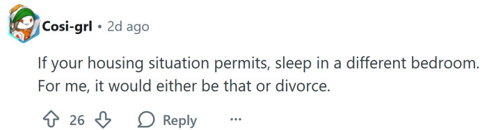 "Sleep in a different bedroom."