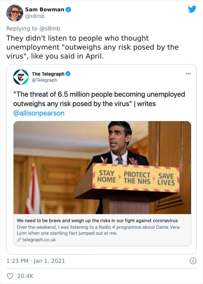 Bowman was aware of Pearson’s similar “gems” and knew they were terrible, but he hadn’t grasped just how bad they were until he put them all next to each other. “That made her Wuhan tweet seem absolutely bizarre to me—she seemed to have no conception of how her actions might have affected our own (very poor) response to Covid in the UK,” he says.