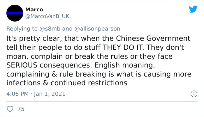 Allison Pearson, a columnist and author from the UK, known for her claims that lockdowns and masks don’t save lives, started 2021 with a tweet in which she asked how people in Wuhan managed to get the pandemic under control.