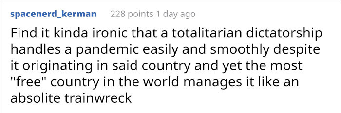 People who have lived in totalitarian regimes are probably shaking their heads in disbelief when a democratic country is called “a totalitarian police state” because it tries to help its citizens during a pandemic.