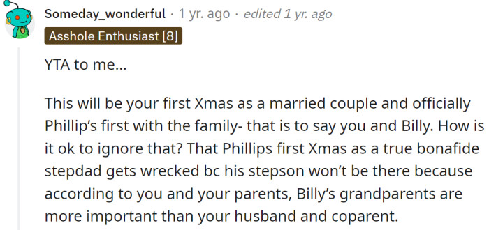A Redditor told the OP that married couples are expected to celebrate Christmas together