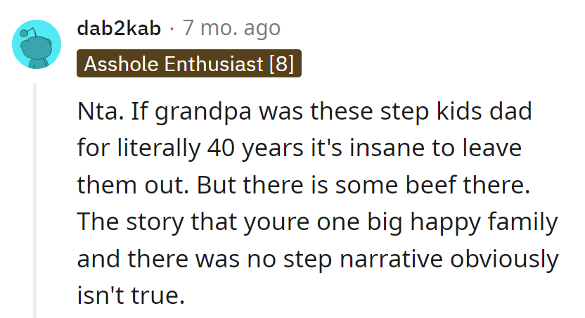 RedditGrandma's obituary only acknowledged her biological family, omitting any mention of the close step-family bond they shared.