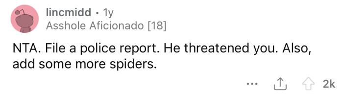 Reddit/PlsHelpmeThrowRA"My wife has arachnophobia. Your yard practically gave her a heart attack this morning," he screamed.