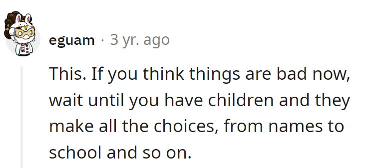 "Wait until you have children."