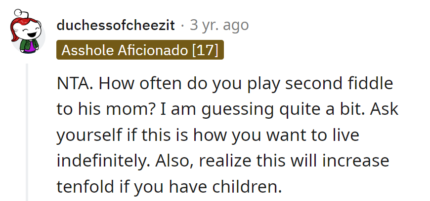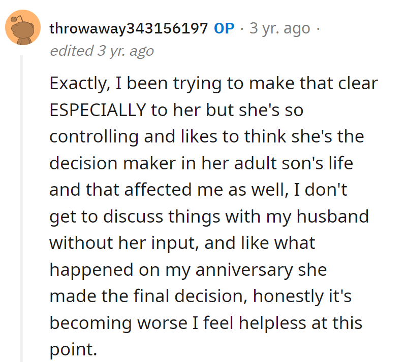 RedditOP and her 29-year-old husband marked their third anniversary. His mom asked about their plans for the occasion.