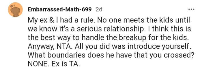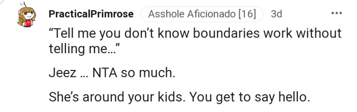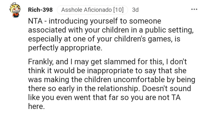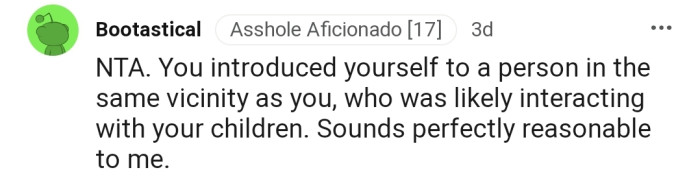 The Reddit community is firmly behind OP on this matter. According to them, OP has the right to introduce herself to whoever is coming around her kids.