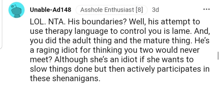 This situation highlights the importance of respecting personal boundaries in relationships. According to research in the Journal of Social and Personal Relationships, boundary violations can lead to significant emotional distress and conflict, particularly in post-divorce scenarios. When one partner feels their boundaries are being disregarded, it can trigger feelings of betrayal and resentment.