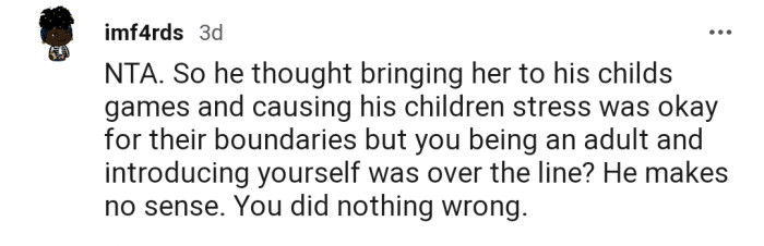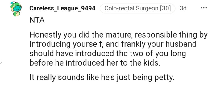 Some commenters have also faulted her ex-husband for not taking the lead by introducing his new girlfriend to the family. In their words, he's being "petty" and "immature."