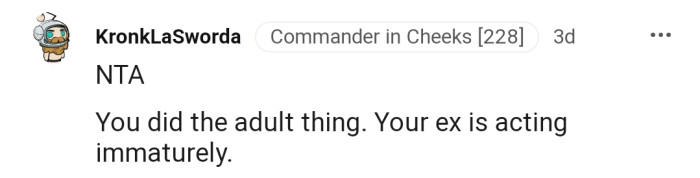 Our narrator (Original Poster) had recently gone through a split with her ex-husband, and as time went on, it seemed like life was moving forward for both of them. However, an unexpected turn of events left OP questioning whether she had overstepped her bounds.