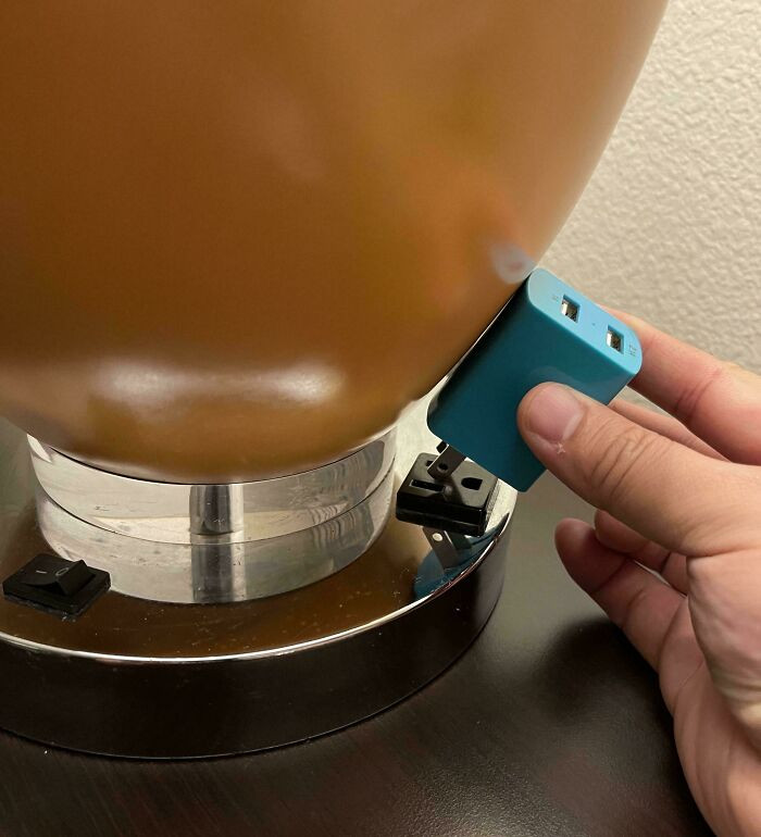 "Impossible To Plug Anything Into This Hotel Lamp Outlet."