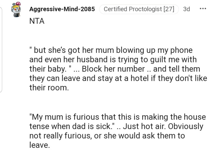 This was the case for our narrator (Original Poster), who returned to her parents’ house and found herself in the midst of an unexpected family drama.
