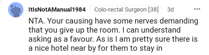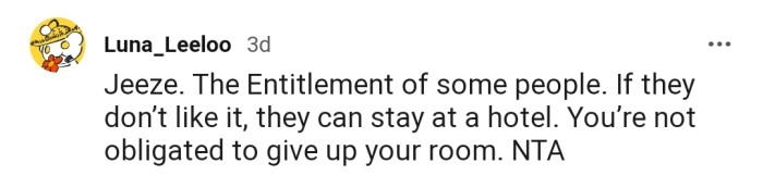 "You’re not obligated to give up your room. NTA."