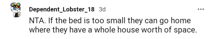 "NTA. If the bed is too small, they can go home."