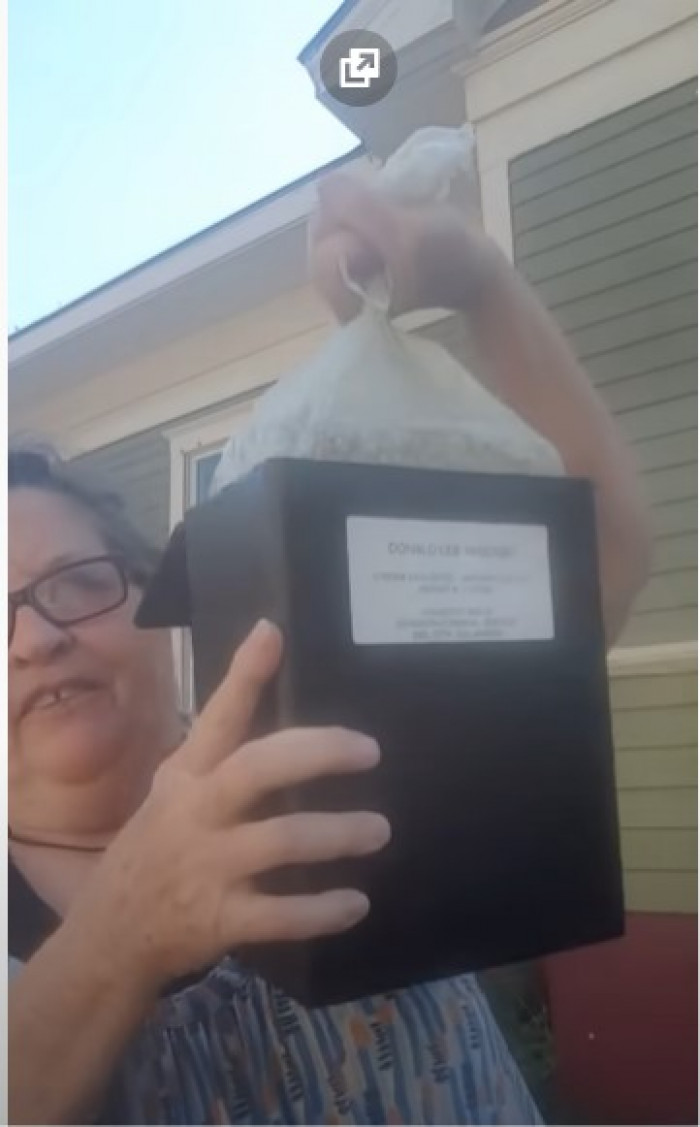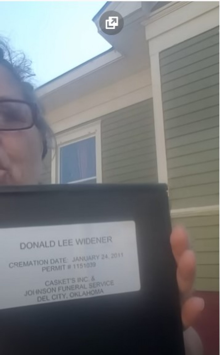 Marsha WidenerIn the video she posted to YouTube, Marsha holds the bag containing Don’s ashes, explaining, “I know you’re not going to understand why I’m doing this. … His family doesn’t want him, his brother doesn’t want him around, and his kids don’t want him—in fact, they want him to go in the gutter or the toilet.”