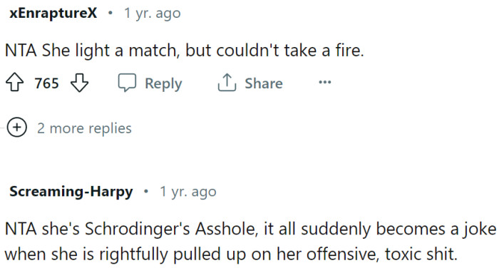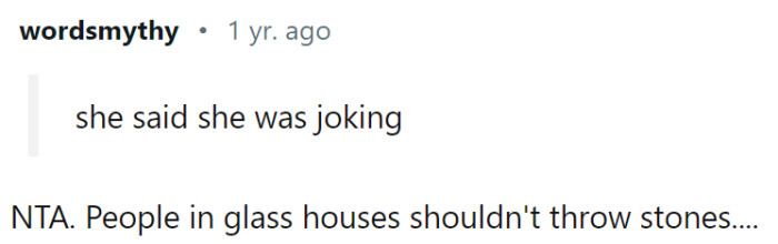 The exchange became heated as the woman angrily told OP to mind his own business, while OP retorted that she should take her own advice. In this incident, a simple joke turned into a personal and painful exchange.