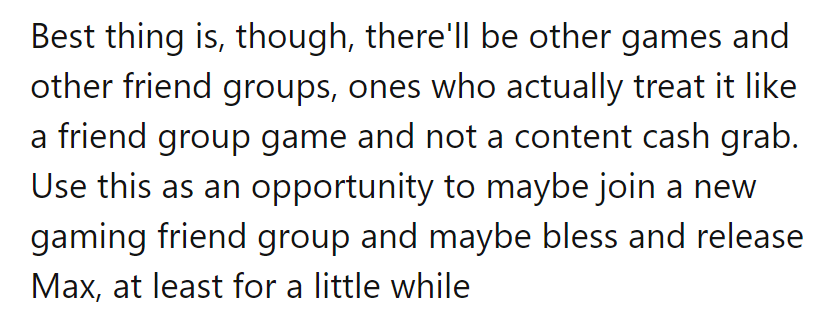 "Use this as an opportunity to maybe join a new gaming friend group."