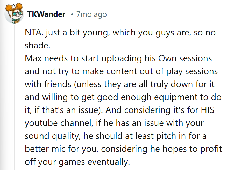 Max records their gaming sessions for their YouTube channel with everyone's consent.