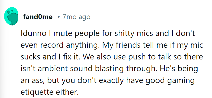 "He's being an ass, but you don't exactly have good gaming etiquette either."