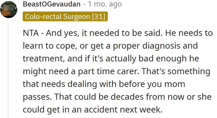 In conclusion, the Redditor's situation highlights the emotional complexities of familial caregiving and the importance of self-care and communication.