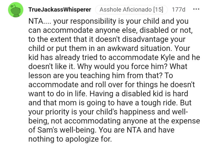 The story that follows sheds light on such a scenario, where our narrator (OP) tries to protect his sons' freedom of association without coming off as discriminatory toward a special needs child.