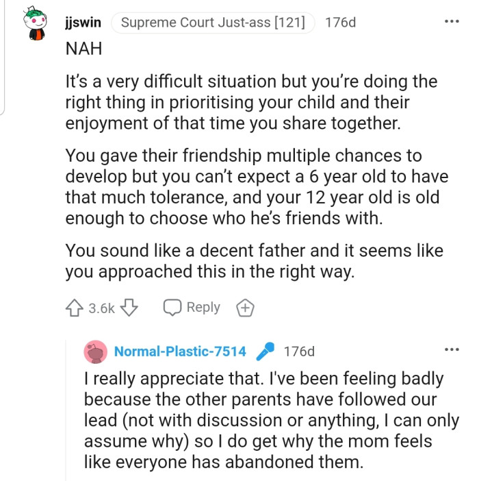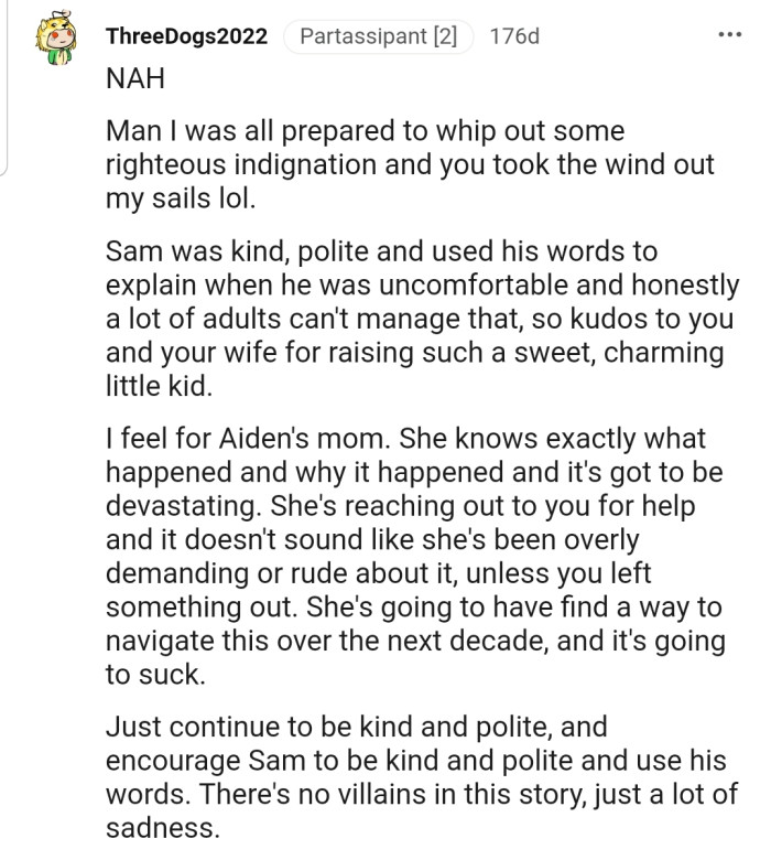 OP was reluctant but felt he had no other option than to keep his kids away from Aiden. Subsequently, other parents began to withdraw their kids as well, which hurt Aiden's mom.