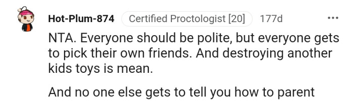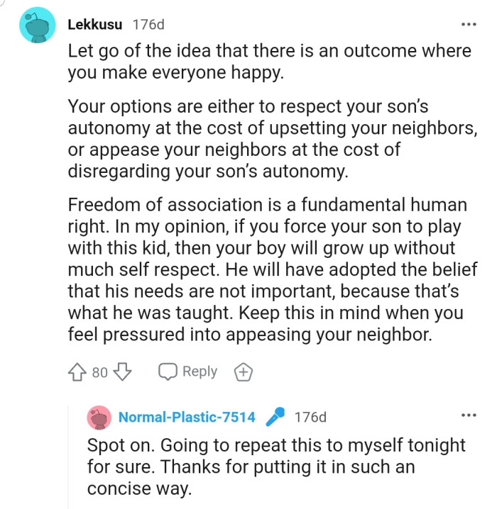 The Reddit community has decided that there are no villains in this story. As much as Aiden's mom has the right to defend her child, OP's son also has the freedom of association.
