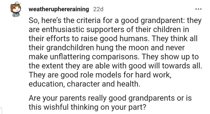 "Are your parents really good grandparents, or is this wishful thinking on your part?"