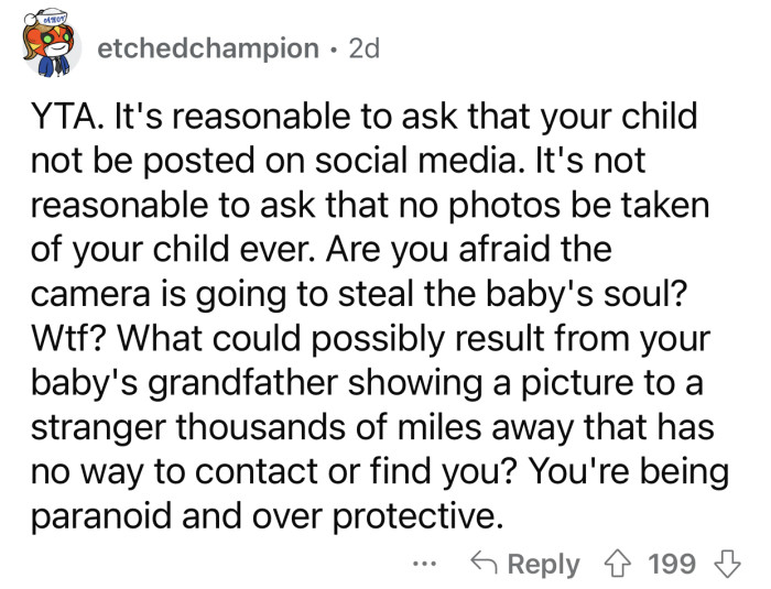 Reddit: r/AmItheA**holeOP's husband made it clear from the beginning that no one is to kiss or photograph their baby without asking them.