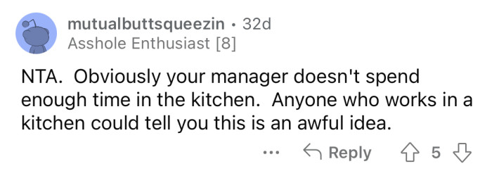 "Obviously your manager doesn't spend enough time in the kitchen."