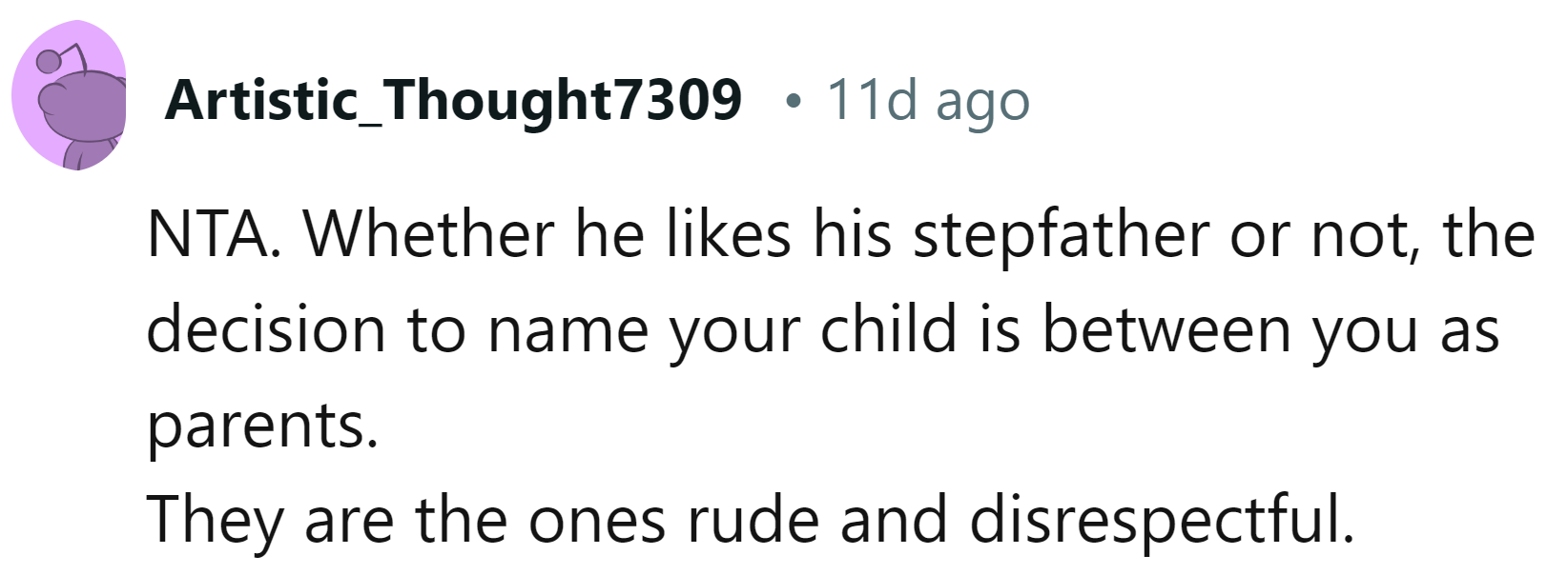 The Redditor ignored the comment, but then they started saying how sad it was that both grandfathers weren't honored in the baby's name.