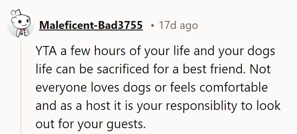 While the host viewed her pets as part of her home and believed them to be harmless, the expecting mother expressed concerns about having the dogs around a busy party with small children. This disagreement escalated to the point where the host felt the only solution was to cancel the event at her home, suggesting her friend find a new venue.