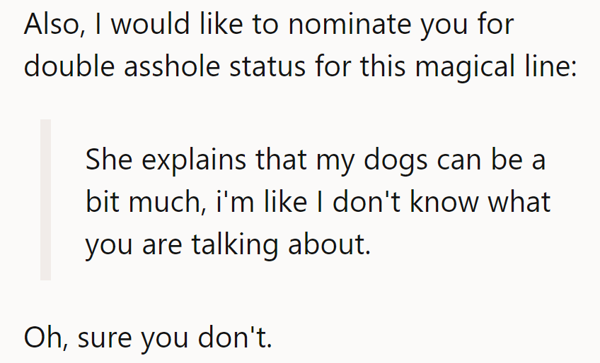 Barking up the wrong tree, huh? OP's TA for not keeping their fur babies safe from the party poopers!