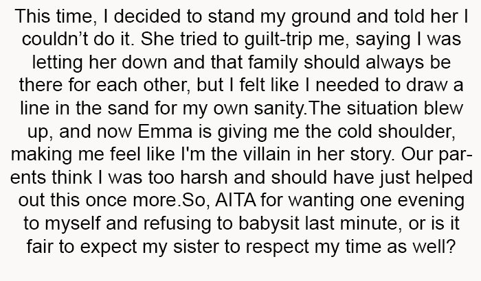 AITA For Denying A Last-Minute Babysitting Request