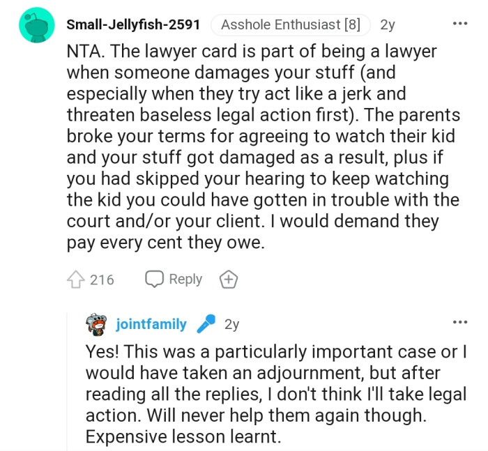 "The Parents Broke Your Terms for Agreeing to Watch Their Kid, and Your Stuff Got Damaged as a Result."