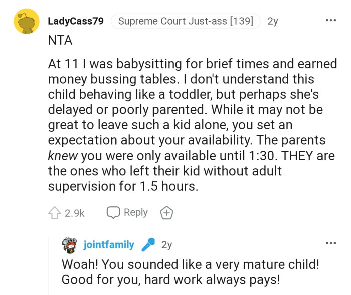 "NTA...At 11, I Was Babysitting for Brief Times and Earning Money Bussing Tables."