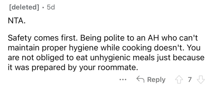 Redditor Asks If She's An A**hole For Refusing To Eat Anything Her Roommate Cooks Because Of Her Questionable Food Hygiene