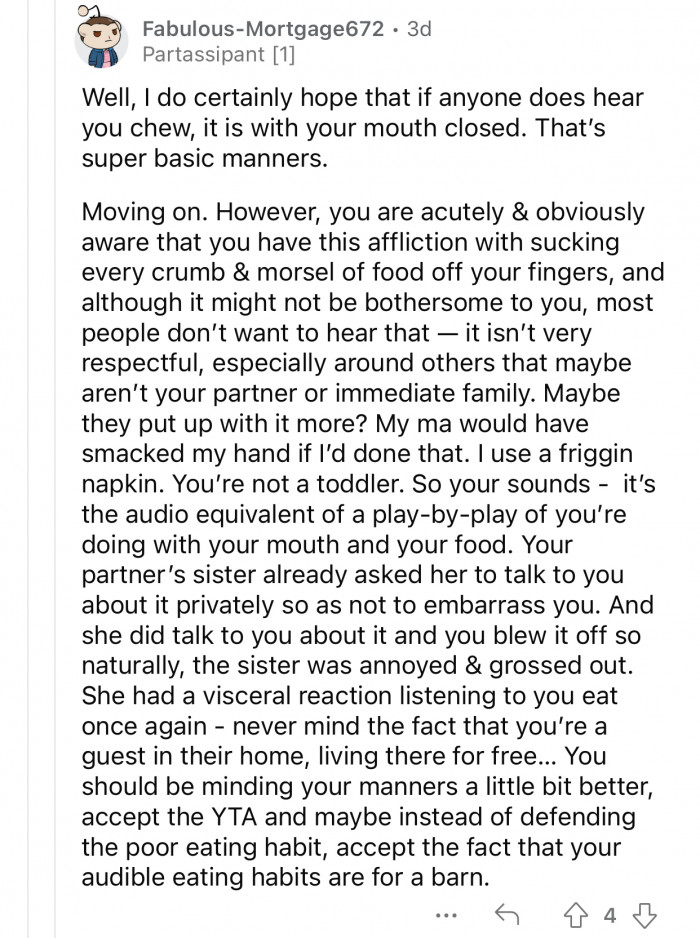 "You should be minding your manners a little bit better; accept the YTA..."