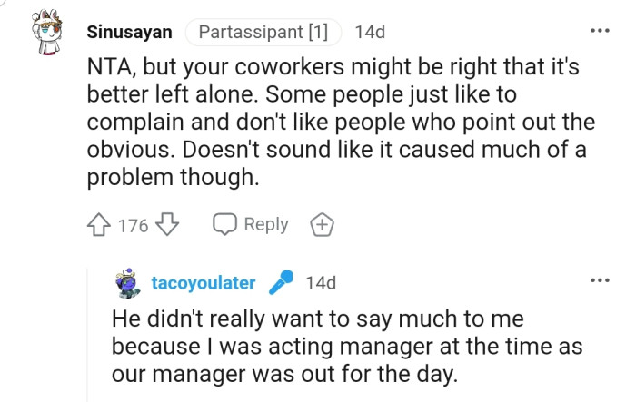 Honest communication is vital in both workplace and personal relationships. According to Dr. Helen Fisher, a biological anthropologist, "Clear and open communication fosters trust and understanding, which are essential for healthy relationships." For individuals facing conflicts like this Redditor, addressing issues head-on can prevent misunderstandings and promote healthier interactions, as noted by Dr. Sue Johnson, a pioneer in couples therapy, who states, "Confronting issues directly is key to resolving conflicts and building stronger connections."