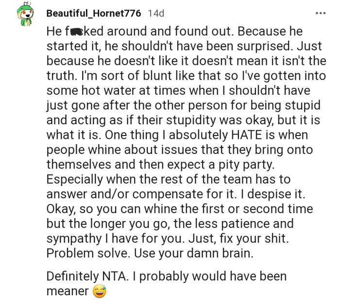 Not many people can handle the truth, and this coworker isn't proving otherwise.
