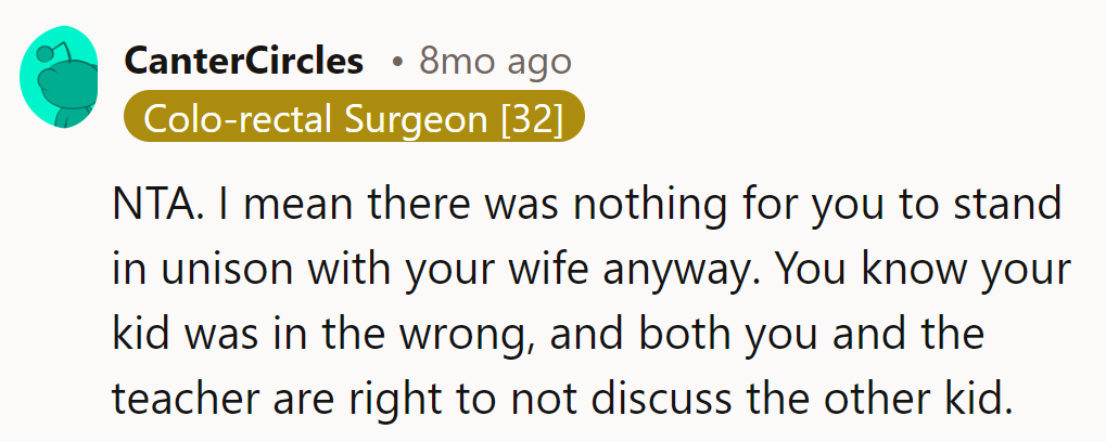 RedditHe assumed the teacher had a reason. His wife felt unsupported.