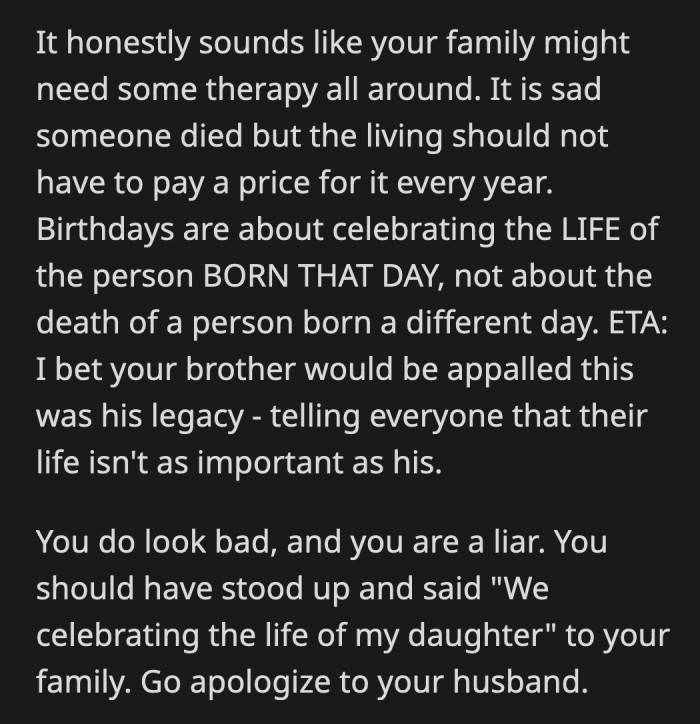 OP's 17-year-old brother passed away on the day of his birthday. Their parents decided that no one in their family was to celebrate a birthday ever again.