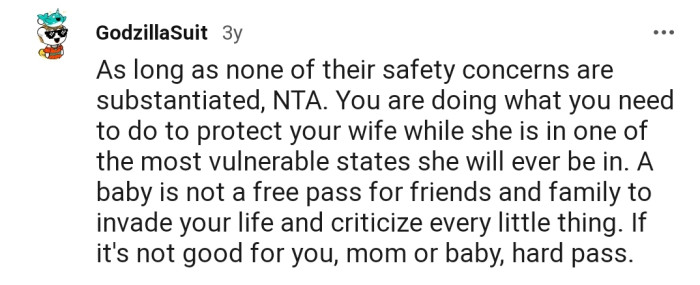 In this case, the Redditor’s decision to restrict family access to their newborn reflects a protective instinct against unwarranted criticism, which is a common response among new parents seeking to establish their boundaries. By prioritizing mental well-being over external approval, they are actively choosing a healthier approach to parenting.