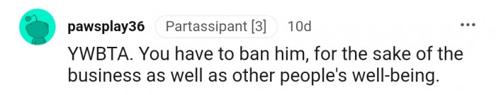 "You have to ban him, for the sake of the business as well as other people's well-being."